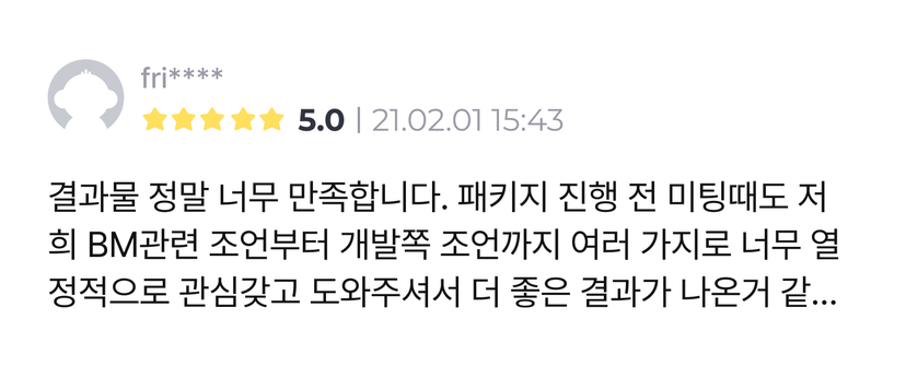 클라이언트의 평점이 서비스 품질을 증명합니다.